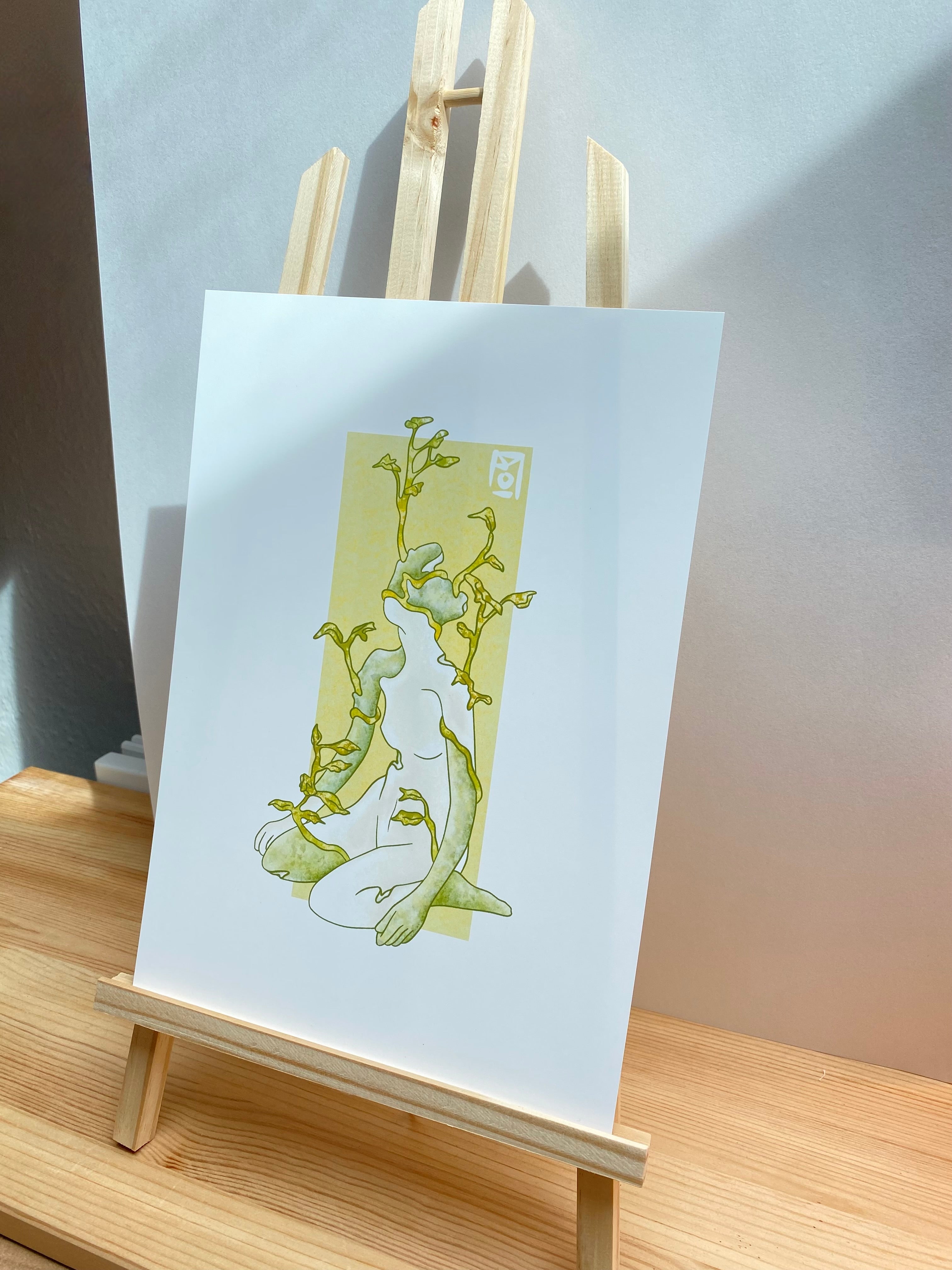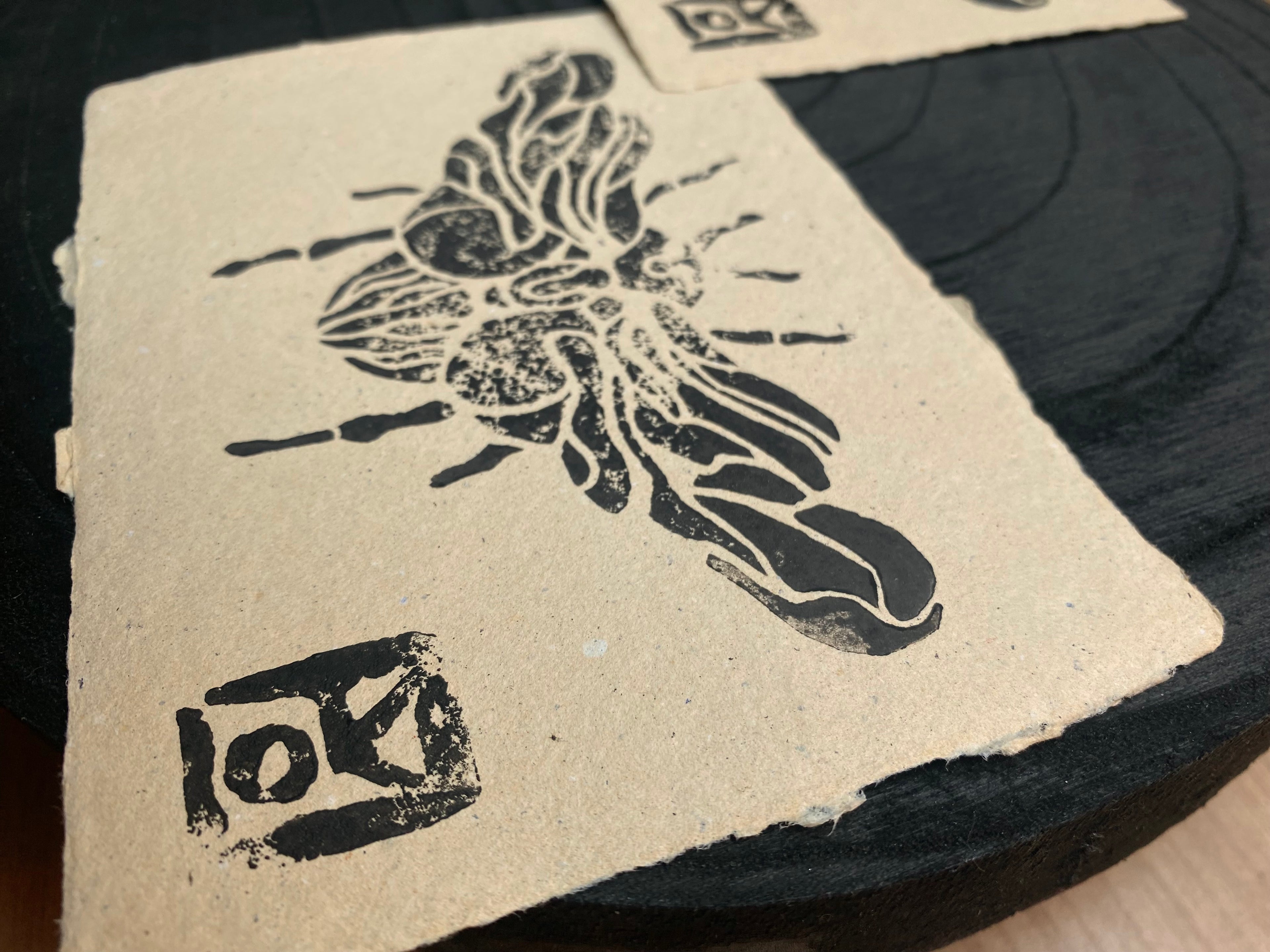 Utilisant Procreate afin de retranscrire mes idées sortie de mon imaginaire, la gravure sur plaques linoléum me sert de marque déposés.