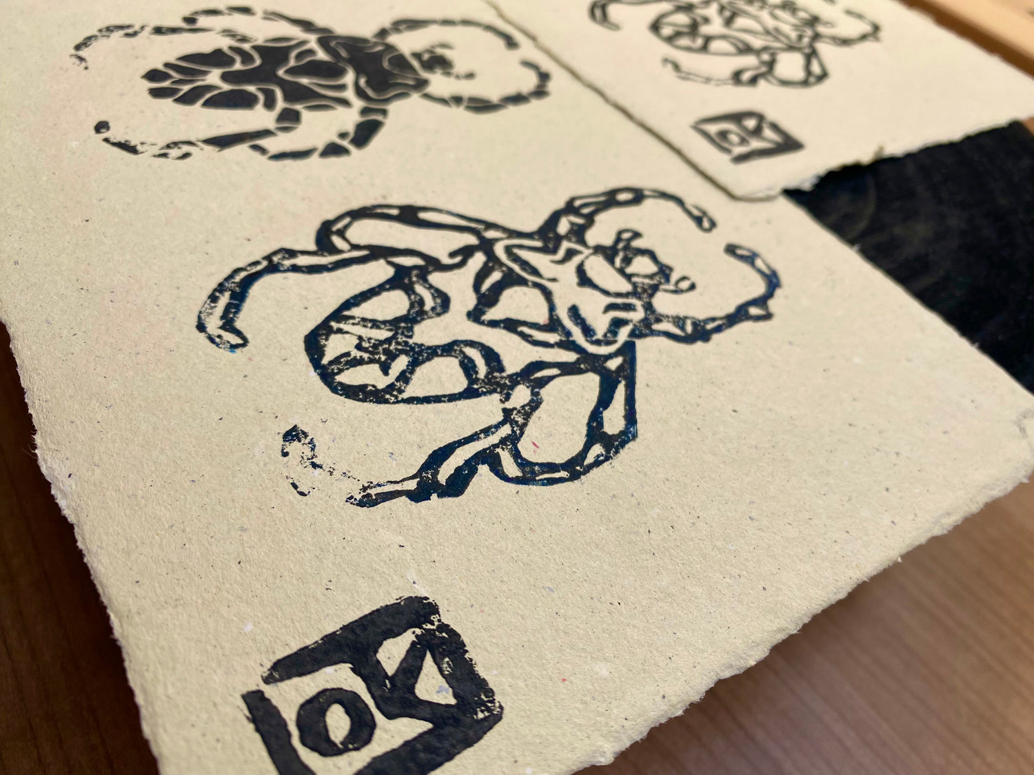 Exprimant un amour fou dès le premier essaie sur l'art de la linogravure.